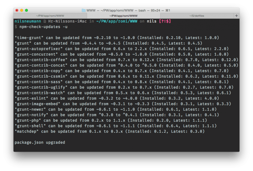 Wer mit Grunt, CoffeeScript, SASS, LESS etc. arbeitet, der hat regelmäßig mit Node.js zu tun. Viele Node.js plugins, die per npm installiert werden, sind sehr Beta. Also muss man sich immer wieder mal darum kümmern, dass die Packages auch von zeit zu zeit aktualisiert werden. Um ehrlich zu sein, ha…weiterlesen
